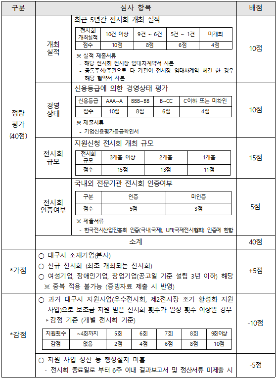 ※ 지원금액의 50% 이상(전시장임차료 제외)은 대구지역 업체 발주의무