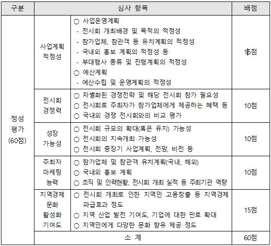 ❏ 평가주체 : 정량평가 (주)엑스코 / 정성평가 : 심사위원회