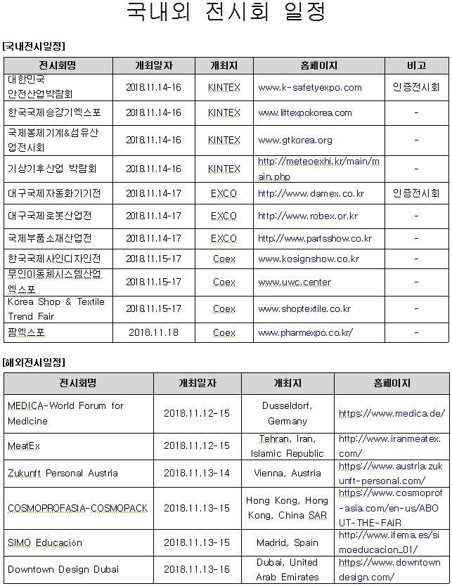 [안내](진흥회) 2018년 11월 3주 전시회 일정 안내