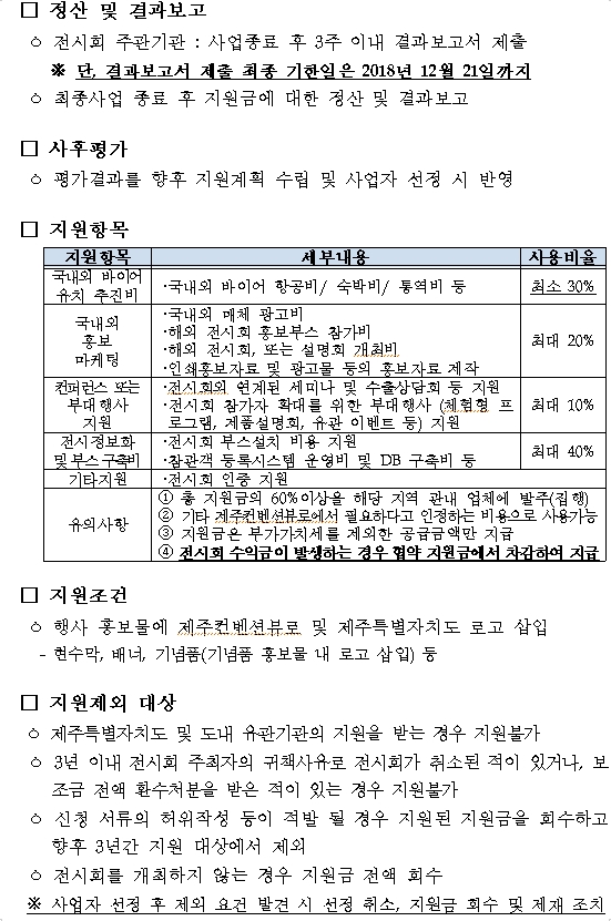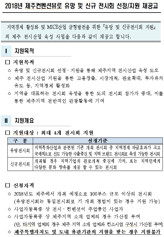 [공고](제주컨벤션뷰로) 2018년 제주컨벤션뷰로 유망 및 신규 전시회 선정/지원 재공고