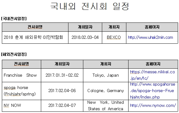 제목 | [안내](진흥회) 2018년 2월 1주 전시회 일정 안내 |