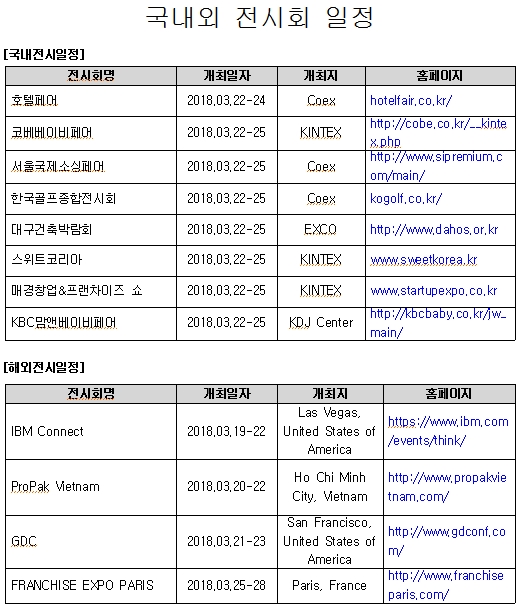 제목 | [안내](진흥회) 2018년 3월 4주 전시회 일정 안내 |