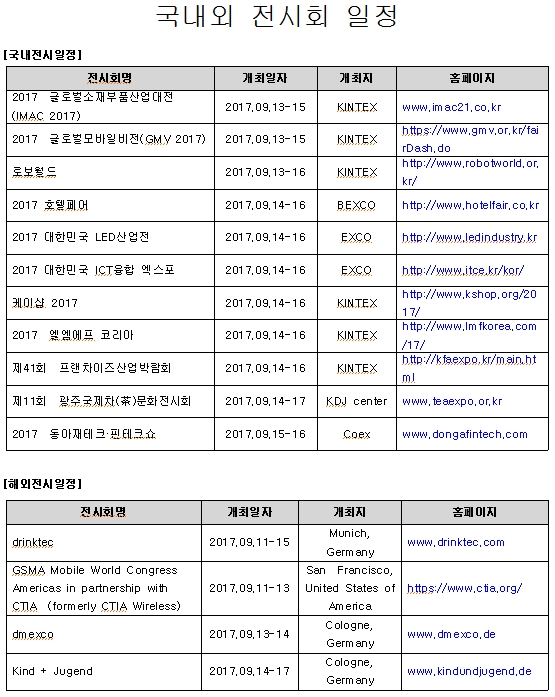 [안내](진흥회) 2017년 9월 2주 전시회 일정 안내