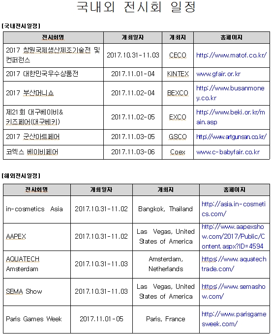 제목 | [안내](진흥회) 2017년 11월 1주 전시회 일정 안내 |