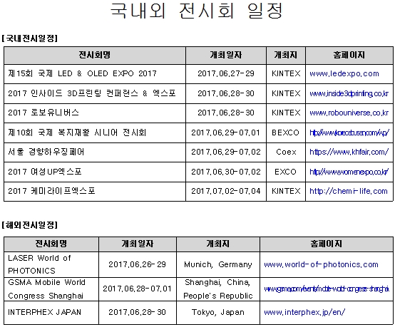 제목 | [안내](진흥회) 2017년 6월 4주 전시회 일정 안내 |