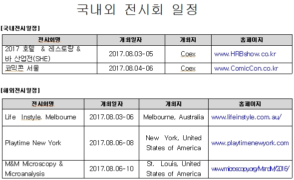 제목 | [안내](진흥회) 2017년 8월 1주 전시회 일정 안내 |