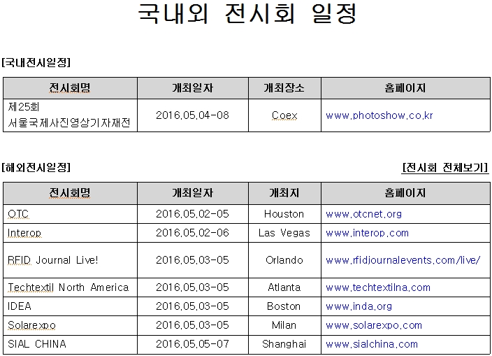 제목 | [안내](진흥회) 2016년 5월 1주 전시회 일정 안내 |