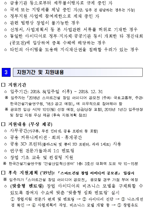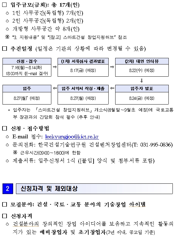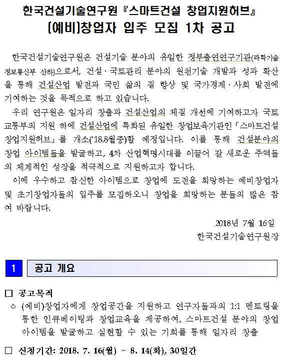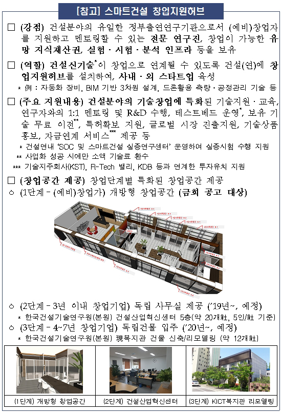 (한국건설기술연구원) 『스마트건설 창업지원허브』(예비)창업자 입주 모집 1차 공고