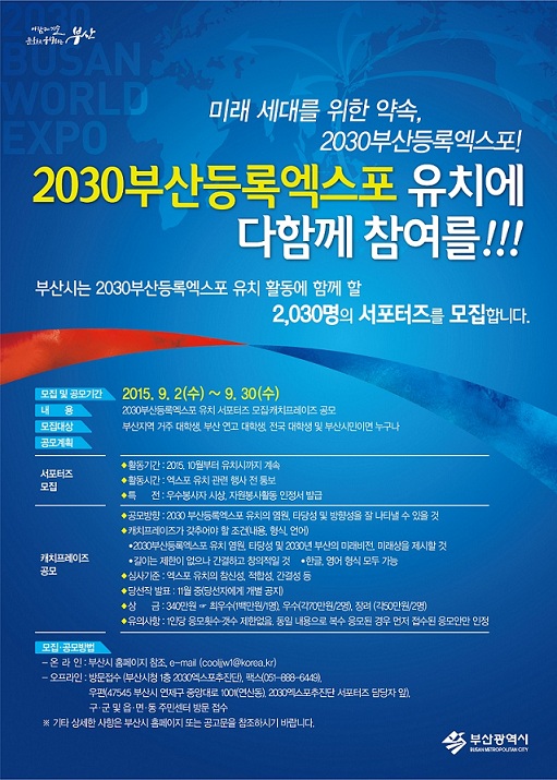 [안내] 2030 부산등록엑스포 유치를 위한 서포터즈 모집 안내