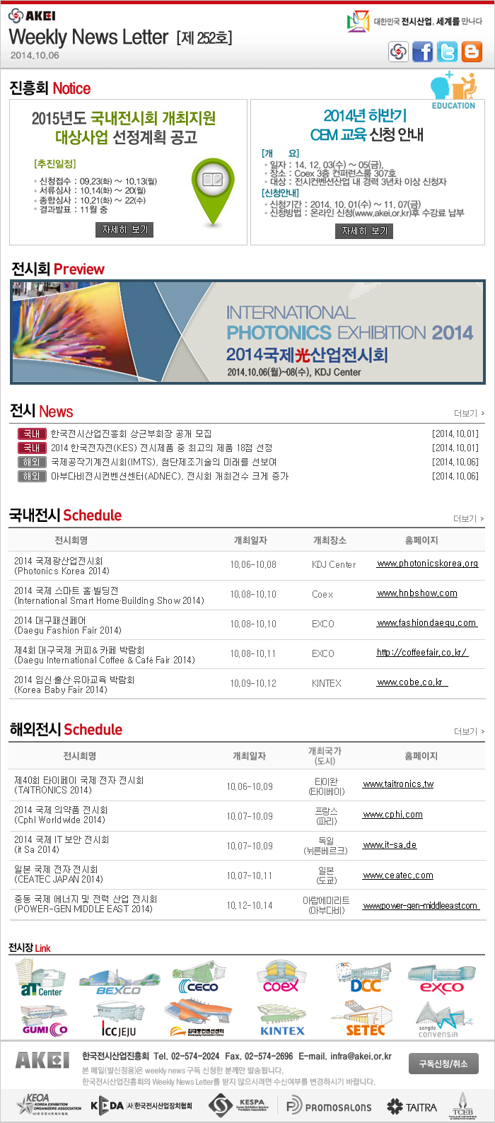 - 이전글[제253호] AKEI Weekly News Letter 253호 14.10.13